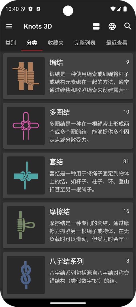 3d绳结ios版是一款内容丰富的3D绳结演示教学以及用途应用,目前为止应用内共有127个3D绳结的演示教学,而且内置动态绳结打法教程及其文字说明,你可以用它学会各种绳结的打法,并熟练地运用在生活中,相信体验玩这款软件后能够让你对绳结有全新的认识!3d绳结苹果版中主要分享绳结和结绳方式,通过3d结绳视频和3d绳结编法视频,你可以看到很多不同类型的结绳的绑法,3D结绳让你学会打绳结和绳结编法。