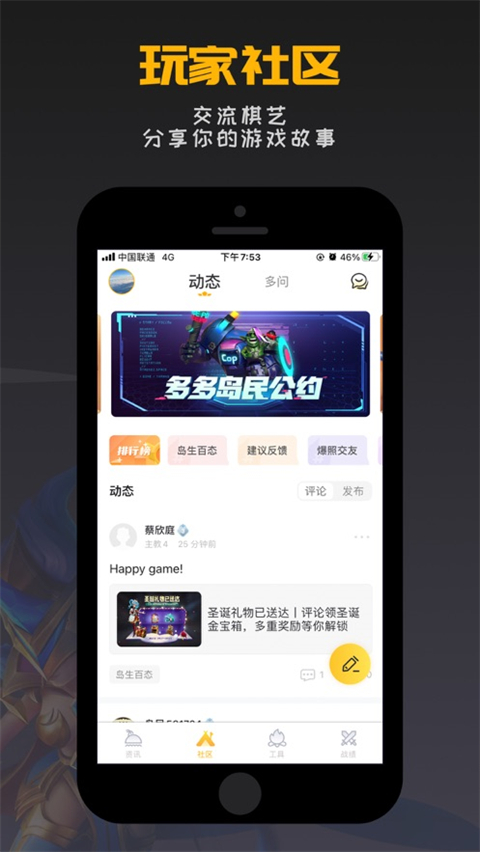 3、社区:专属的互动游戏社区,和众多玩家一起同台竞技,精彩不断