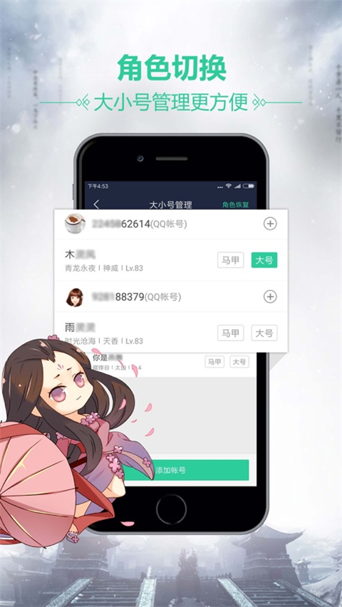 大小号管理可以帮助你轻松记录和一键登陆。