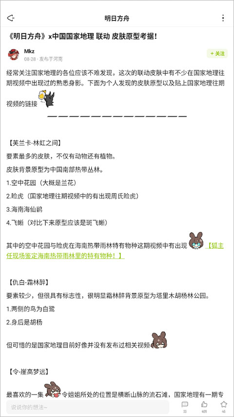 拥有《明日方舟》专属版区和纳斯特港特色版区,玩家可以在这些版区参与到二创同人活动中去,展示自己的创作才能,与其他玩家分享游戏的乐趣。