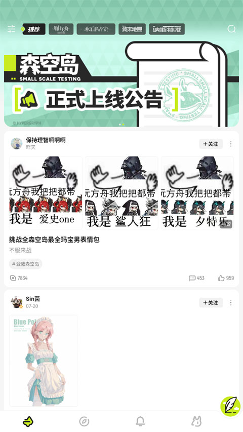 1、进入森空岛ios版,首页是关注的玩家发表的一些热门资讯。