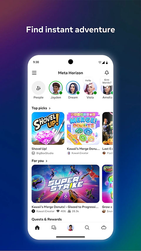 Oculus手机App也允许用户在 VR 中找到添加好友,与他们一起分享各种体验,用户也可以接收与 VR 中的好友、活动和最新内容有关的通知,保持与他们的社交圈子和最新动态的联系。此外,Oculus app还提供了管理和监控用户的 Oculus 设备、帐户和通知的功能,通过Oculus用户可以方便地管理 VR 设备,并及时了解任何与其设备和账户有关的通知。无论是购买游戏、预订虚拟席位,还是与好友分享体验,Oculus 软件都能满足用户的需求,并带来精彩的虚拟现实体验,有需要的朋友快来下载试试吧!