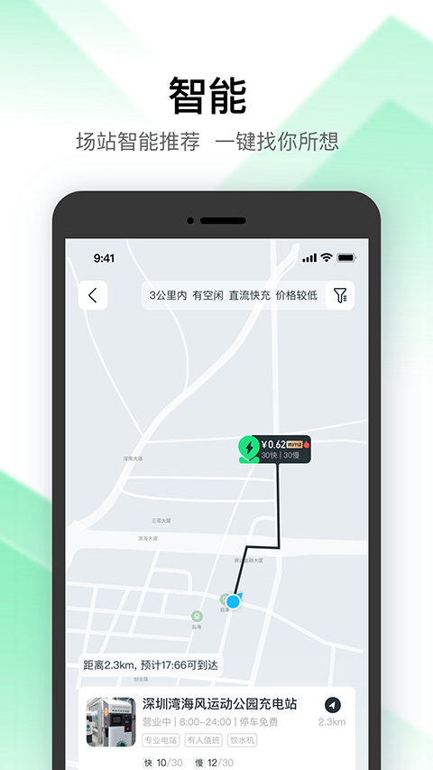 1、可一键预约,智能导航直达充电站位置。