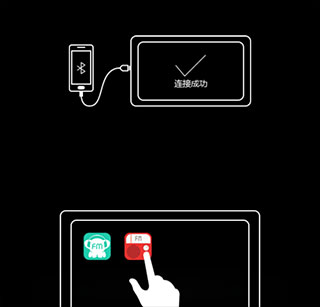 2、将安卓手机的蓝牙+USB与车机连接!连接成功后,车机自动同步手机助手里预先下载的APP,点击即可使用。