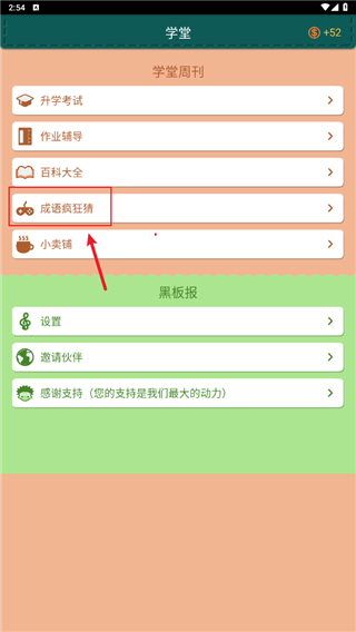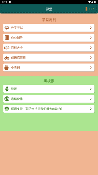 3、作业辅导,所有的题目都会包含的关卡,玩家需要通过作业辅导来获取金币进行学历升级考试,还有成语疯狂猜等多种模式待玩家探索。