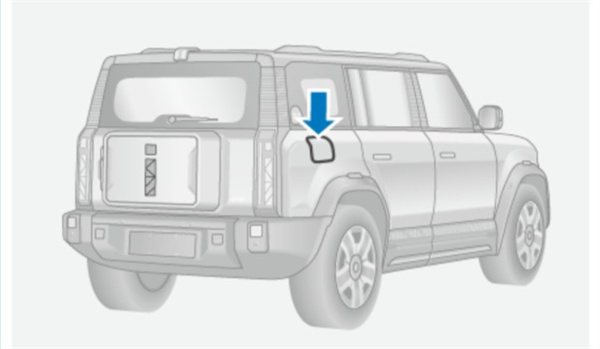 方式二、车外手动按压充电口盖左侧区域开启;需满足车辆处于解防状态。