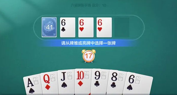 这局的开局思路就是摸?,丢牌思路可以按着10→6→Q的顺序出牌。