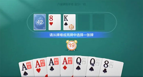 此时应该摸一张暗牌,打掉手里的8,只要再等一张A或Q,就能开始听牌~