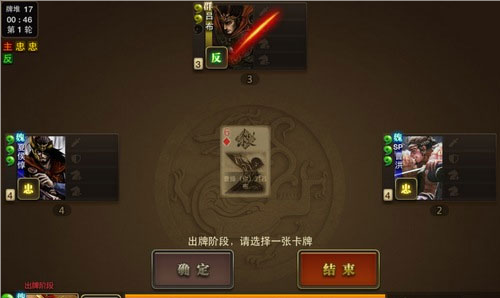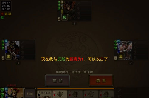 杀死反贼后,就出现了这样三足鼎立的局面。这个时候,聪明的主公就会转攻为守(除外你太笨,暴露了自己的身份是内奸)主公静观你与忠臣的恶斗。