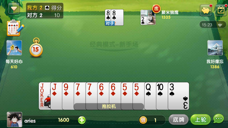 欢乐升级官方正版是一款由腾讯推出的休闲纸牌游戏。其在保留传统升级玩法的基础上进行了多重创新,不仅加入了拖拉机模式、抄底模式、510K模式和连打模式,还精心设计了新手场、初级场、中级场和高级场,满足不同层次玩家的挑战需求。欢乐升级游戏中,你需要依靠智慧、反应和团队合作能力,与伙伴默契配合,在紧张的对战中尽情展现牌技。